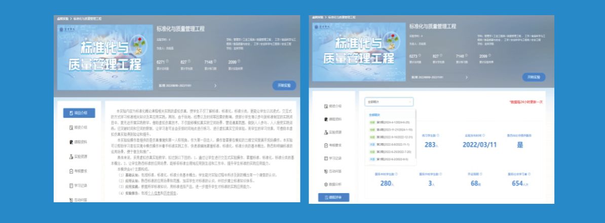 标准化与质量管理工程虚拟仿真实验(8学时)已纳入“质量管理与标准化工程”课程教学大纲,该课程作为通识教育必修课程已纳入全校所有本科专业2023级和2024级人才培养方案,从2025年开始,每学年均会按计划开设,并向非本校学生的校外社会学习者开放。本学期“质量管理与标准化工程”课程已面向质量管理工程、标准化工程、安全工程三个专业2023级本科生开设,计划2025年上半年面向全校所有2023级本科学生开设。课程访问链接为:https://ybu.zhihuishu.com/schoolPlatform.html#/virtualExperiment?courseId=2001000118&schoolId=1949&VNK=c50376c7