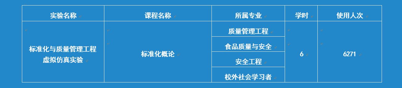 本实验面向宜宾学院校内所有本专科学生,以及校外质量管理、标准化、知识产权等相关技术领域的从业人员开放,在校内平台已经运行6期,通过调研,学生普遍反映学习效果好,开阔了视野。