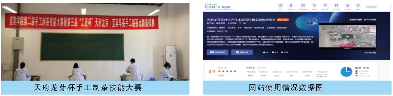 农林与食品工程学部开发的“天府龙芽茶叶生产技术虚拟仿真实验教学项目”平台(https://www.ilab-x.com/details/page?id=4136&isView=true)在2019年立项为省级虚拟仿真实验教学项目,2021年立项为四川省一流本科课程,该实验系统包括天府龙芽茶生产车间布置虚拟仿真实验、天府龙芽茶加工设备操作虚拟仿真实验、天府龙芽茶生产工艺虚拟仿真实验,内容涉及茶学专业的主干课程,涵盖天府龙芽茶生产全过程,模拟真实茶厂生产场景,并在仿真软件中嵌入相关标准文档及理论规范等知识点,知识点14个以上。通过项目建设,建立天府龙芽茶理论与实践相结合、“能实不虚,虚实结合”的教学体系,使学生的思维与意识高度沉浸到生产车间中从而获得身临其境的真实体会,提高学生对真实天府龙芽生产过程和设备等的感性认知。
